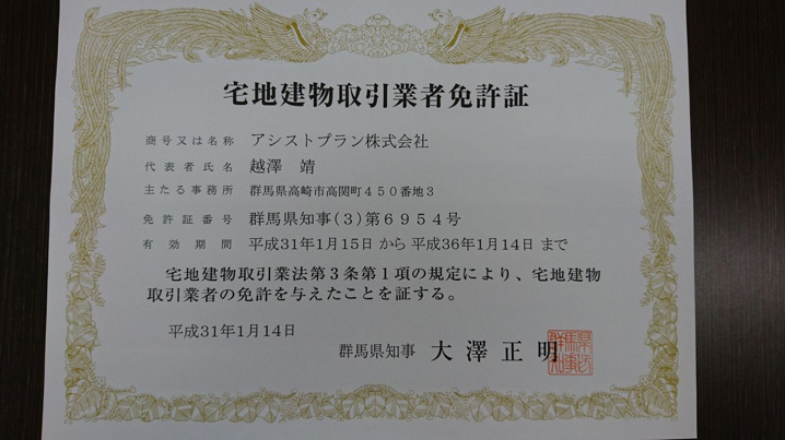 高崎の不動産情報 > アシストプラン株式会社のブログ記事一覧 > 不動産の免許更新しました!