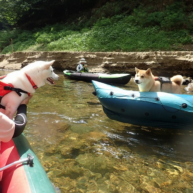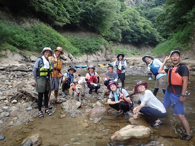 上流で休憩♪総勢11名+ワンちゃん2匹です♪