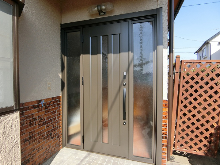 今回のリフォーム工事は玄関引き戸をドアに交換する工事!通常ですと壁を壊して玄関枠を外して、床、壁を直してリフォーム完了となるのですが、既存玄関枠を残して新しい枠を取り付けるやり方!2人で1日の工期で出来るカバー工法で施工してきました。