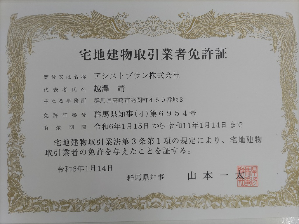 高崎の不動産情報 > アシストプラン株式会社のブログ記事一覧 > 不動産業の免許更新しました